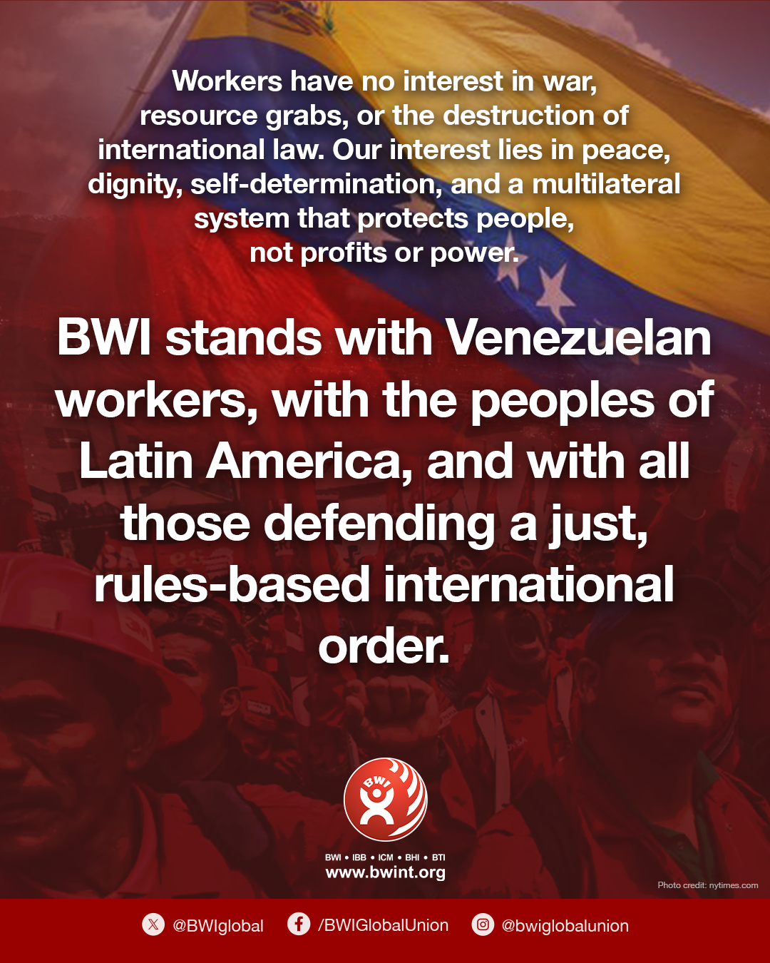 L'IBB soutient les travailleurs vénézuéliens, les peuples d'Amérique latine et tous ceux qui défendent un ordre international juste et fondé sur des règles.