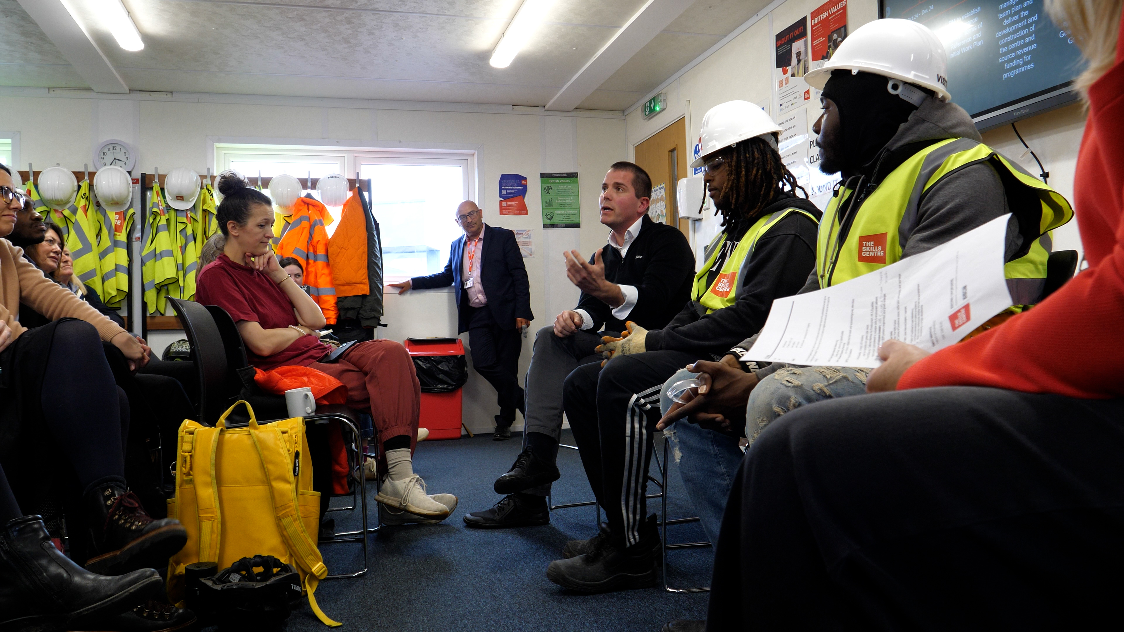 Seeking to understand how a community-centred approach to a just transition could also boost diversity and inclusivity in the construction sector, the learning tour began with a multi-stakeholder discussion at the launch of The Skills Centre. The newly built training centre is a partnership between the Hackney Council and the London Legacy Development Corporation. It specialises in retrofitting and sustainable construction.
